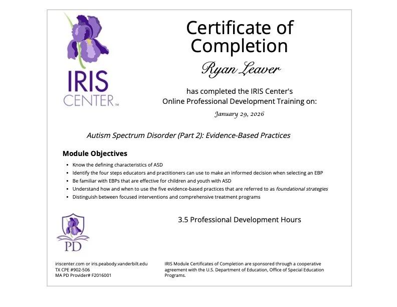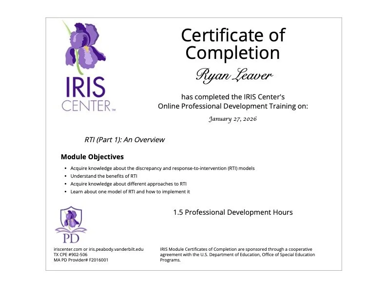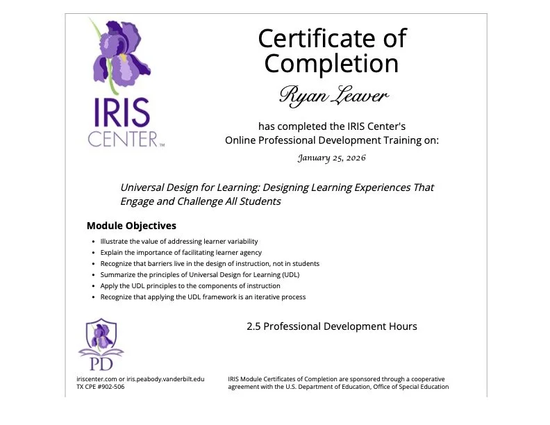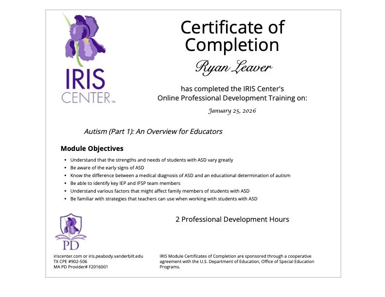- Universal Design for Learning: Designing Learning Experiences That Engage and Challenge All Students. - Autism (Part I) An Overview for Educators - Autism Spectrum Disorder (Part 2): Evidence-Based Practices - RTI (Part I) An Overview