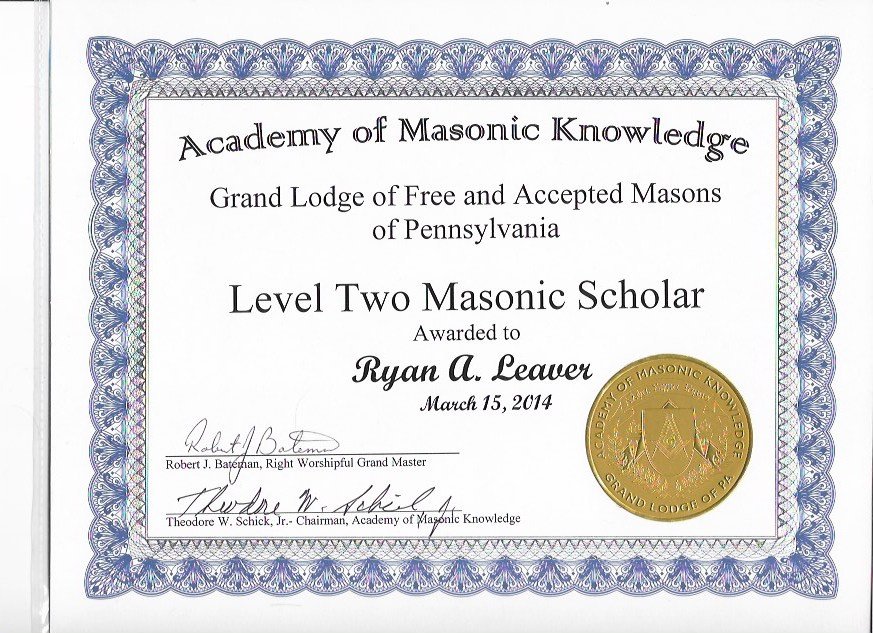 · Academy of Masonic Knowledge – Levels I–III Master Masonic Scholar (2023) — Grand Lodge of Pennsylvania
